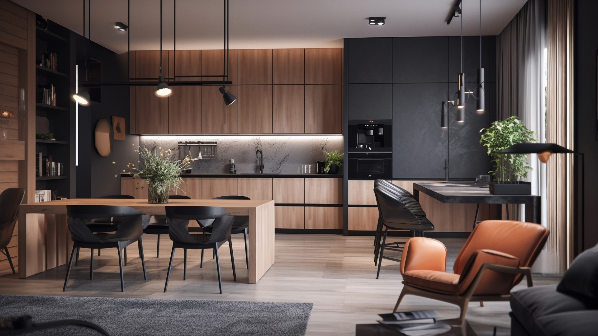 Последние несколько лет минимализм в холодных серых тонах был особенно популярен. Теперь же дизайнеры все чаще обращают внимание на теплые оттенки, ведь с ними можно легко создать уютную обстановку. Постепенно появляется все больше интерьеров, насыщенных ярким ореховым цветом, в которые удачно вписываются оранжевые, оливковые и горчичные акценты.