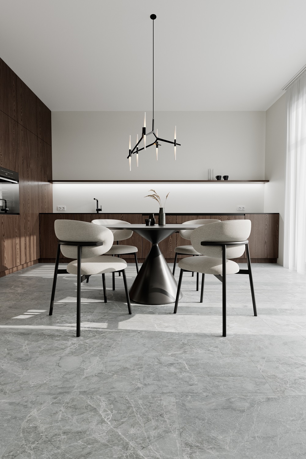 Камень в интерьере смотрится эффектно и солидно, а в формате LVT — это ещё и тёплый, безопасный и нескользкий вариант.