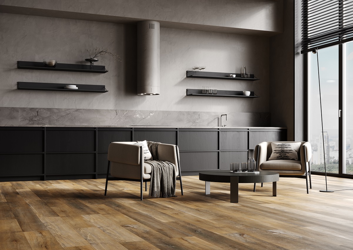 Сначала я думал об обычной плитке, однако в процессе подумал о кварцевом ламинате. Заказать решил в компании Fargo, так как много хорошего о них слышал да и бренд известен на всю Россию. Выбрал Fargo Comfort. Хочу сказать, что совсем не разочарован кварцевым ламинатом, укладывается он легко и быстро, по нему приятно ходить, а кухня визуально стала выглядеть еще лучше.