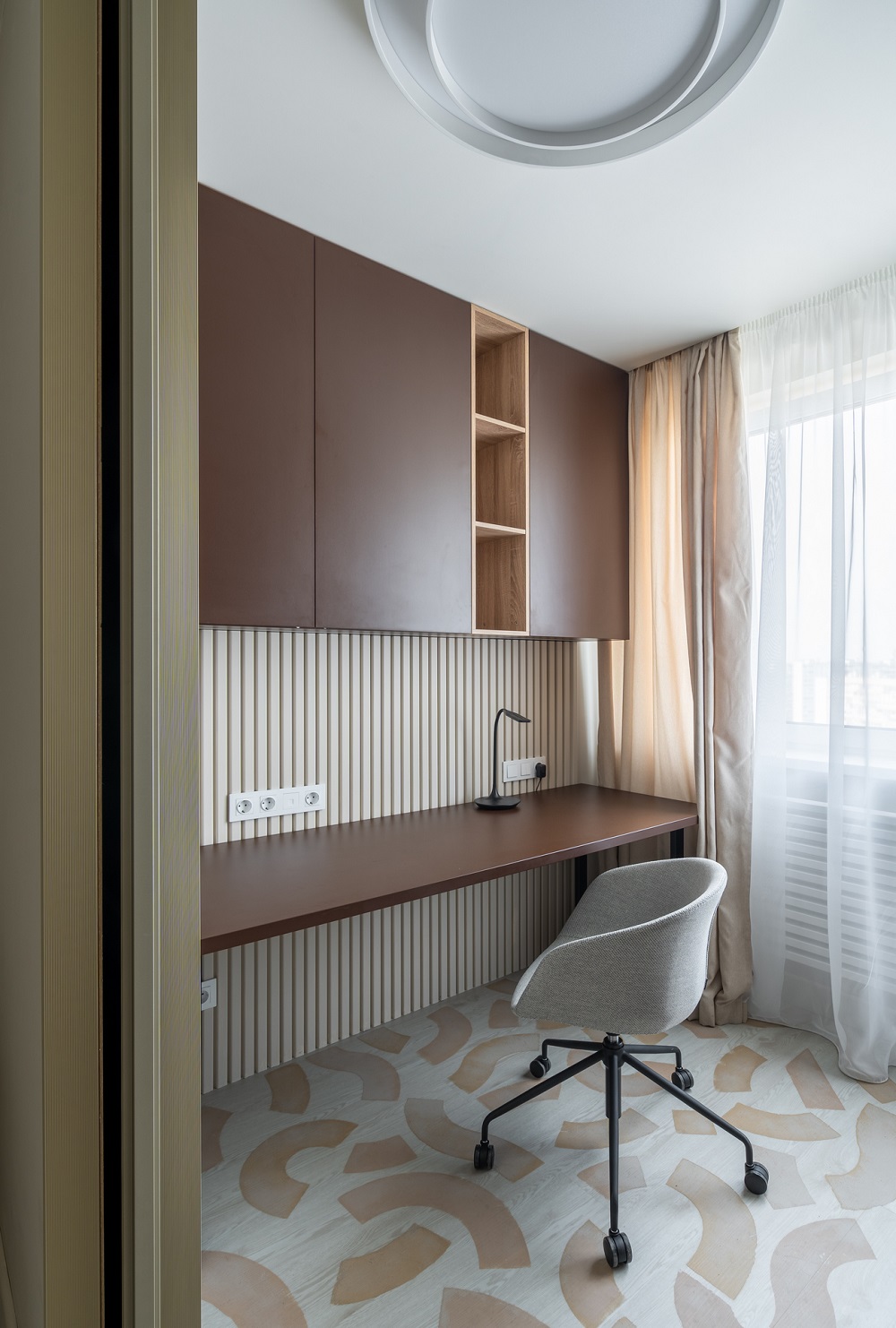 Что важнее в интерьере – функциональность или атмосфера? Дизайнер Лидия Чернова решила этот спор, организовав в интерьере три зоны: удобную гостиную с кружевами на стене, изолированный брутальный кабинет с 3D-принтером и функциональную систему хранения.